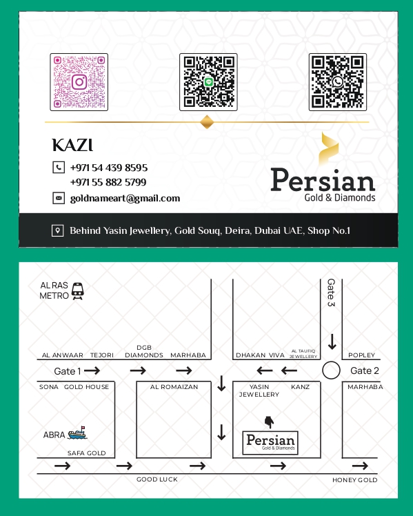 「Gold nameart」(ペルシャゴールドとダイヤモンド)は、ドバイや海外の日本人コミュニティーで最も有名で人気の高いモヒディン・カジ氏の後継者であるアフメド・サン氏がオープンしたゴールドジュエリー専門店です。